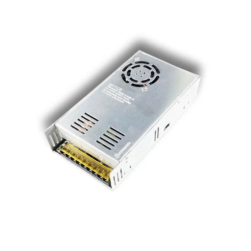 Alimentation a decoupage haute puissance de qualite industrielle, boitier metallique avec orifices de ventilation. Convient a la videosurveillance, l'eclairage LED, les equipements de telecommunications et les systemes de controle industriel. Sorties multiples 12V/24V/36V/48V disponibles.
